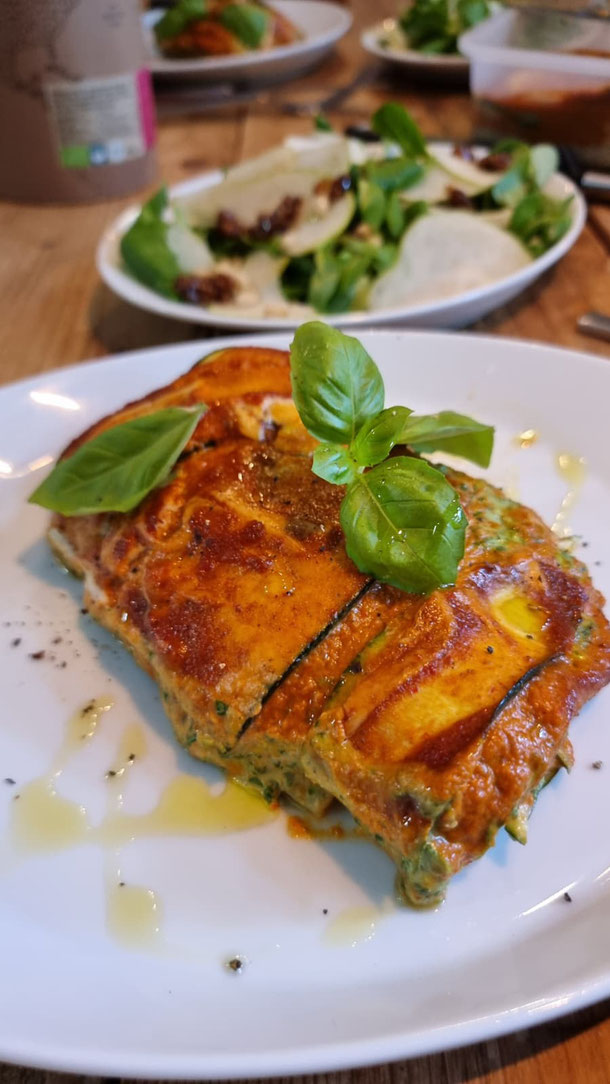 - Kürbis Lasagne mit Linsen Bolognese (roh & gekocht)